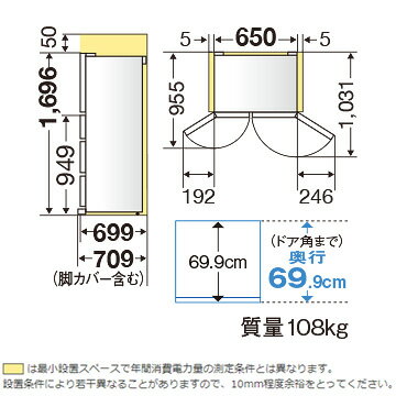 ・日本製【商品の仕様】■カラー:クリスタルフローラル■冷蔵室 ドア開閉タイプ:フレンチドア■冷蔵庫 ドア数:6■ノンフロン■定格内容積:470L{冷凍室89L、製氷室23L、瞬冷凍室30L、冷蔵室230L、野菜室98L}■寸法 外形:幅650×奥行699×高さ1696mm 据付必要奥行:709mm■質量:108kg■年間消費電力量:250kWh/年■定格消費電力 電動機:75W 電熱装置:220W