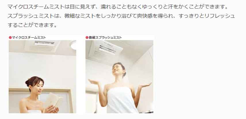 暖房、衣類乾燥、スプラッシュミスト、 24時間換気の機能が付いた商品です。