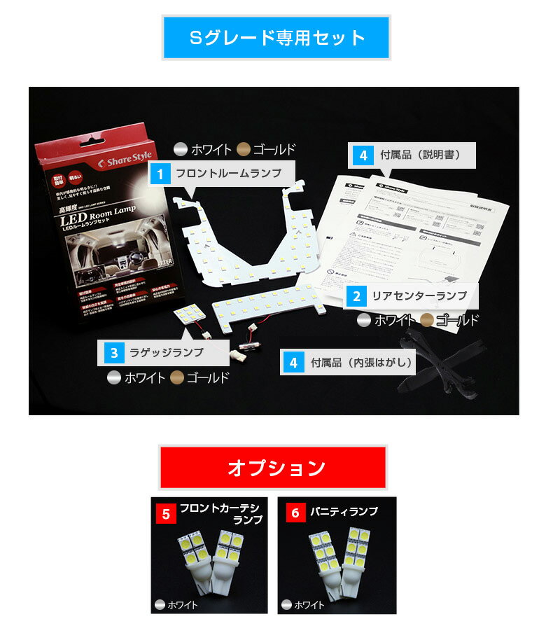 ※ゴールド色が注文可能なパーツは※フロントルームランプ/※リアセンターランプ/※ラゲッジランプです。